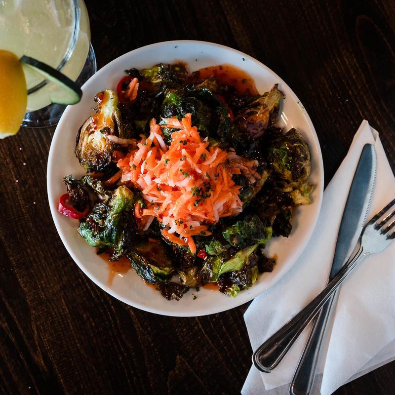 $9.00 | $16.00 • Slow-roasted pork, daikon carrots, jalapeños, Thai chili sauce, micro cilantro